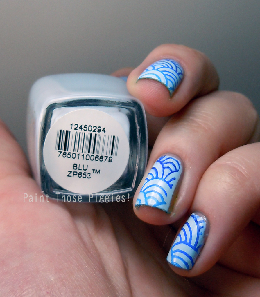 I started with two easy coats of Zoya Blu, a creamy pastel blue that I adore. I had a stamping plate from Winstonia that resembled a rainbow so I decided to go for that. I took three shades of blue polish, OPI Eurso Euro, Essie Butler Please, and Essie Avenue Maintain, and created a blue rainbow gradient on the stamping plate. This was my first use of my newly purchased Winstonia plates and I loved the quality and how crisp the images came out. What do you guys think?