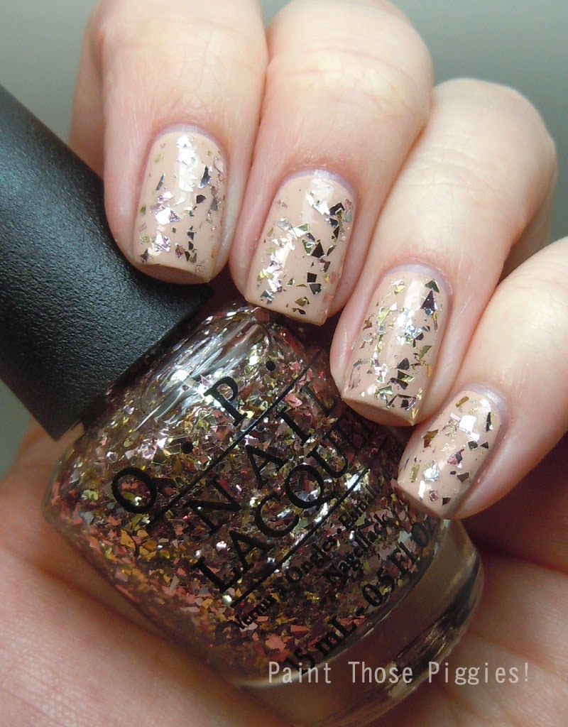 Last up, a shredded glitter mix! This one is really unique and it's a mix of gold, silver, and rose gold shredded glitter in a clear base. I love this one as well. I was worried that the glitter would stick up off the nail but it doesn't. This is one coat over OPI Don't Pretzel My Buttons.