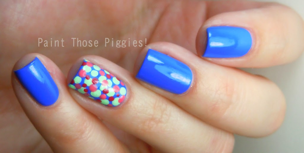 Monday, June 23-Admittedly this was the first time I've tried Sally Hansen Pacific Blue. This is Pacific Blue with an accent nail of dots in China Glaze Highlight of My Summer, Barielle Topless in St Tropez, and Barielle Paradise in the Tropics.